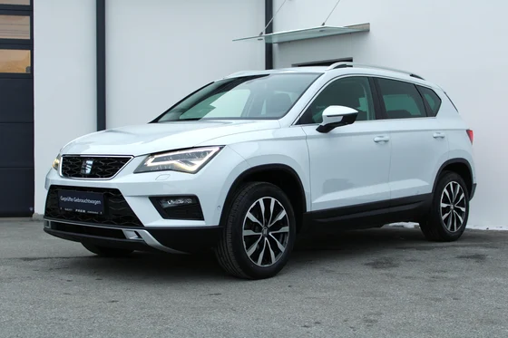 TOP-gepflegter SEAT Ateca "STYLE" TSI mit 115 PS, aus 1. Besitz und vielen EXTRAS! "STYLE" mit Österreich Paket "Style" iVm. Navi und LED Scheinwerfer + Alcantara Sportsitze in Graphit/Schwarz + Alufelgen 17 Zoll "DIEGO" BiColour Titan/Silber + KESSY (Schlüsselloses Schließ- und Startsystem inkl. Startknopf) + BEATS Audio Soundsystem + Dachreling Silber Eloxiert inkl. Radhausverkleidungen schwarz + Scheiben abgedunkelt ab B-Säule + Winter Paket (Sitze beheizbar vorne, Scheinwerferreinigungsanlage, Scheibenwaschdüsen beheizt) 12 Monate Gewährleistung